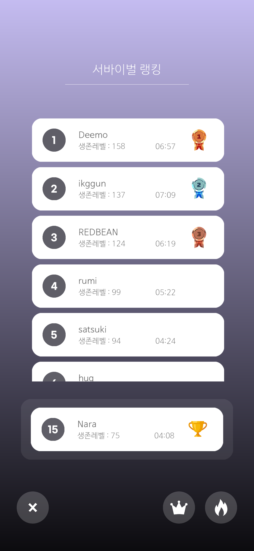 스테이지별 도전과제는 이게 전부. 5판마다 보스전이 나온다.