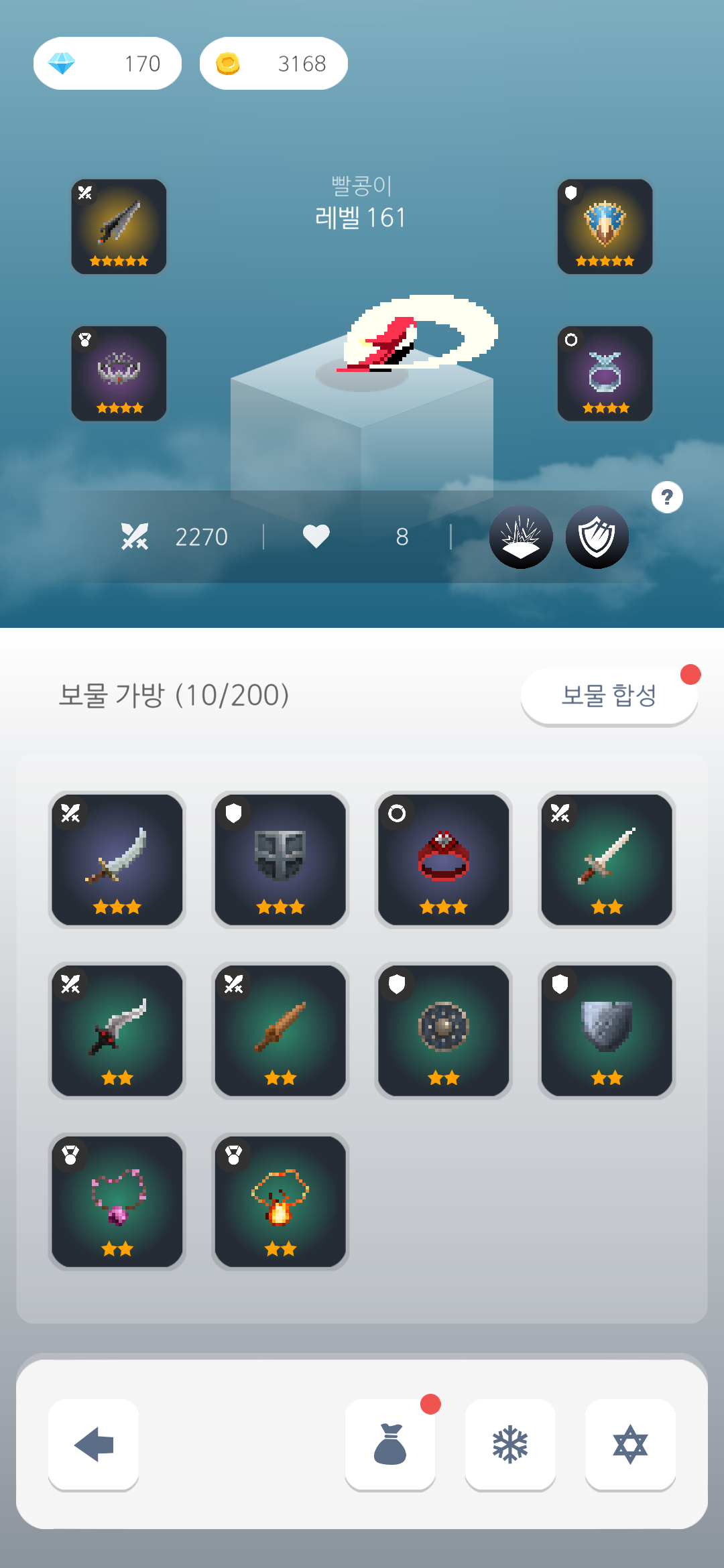 1성 4개 합성해서 2성, 2성 4개 합성해서 3성을 만드는 식으로 강화도 할 수 있음. 말했듯이 확률은 50%