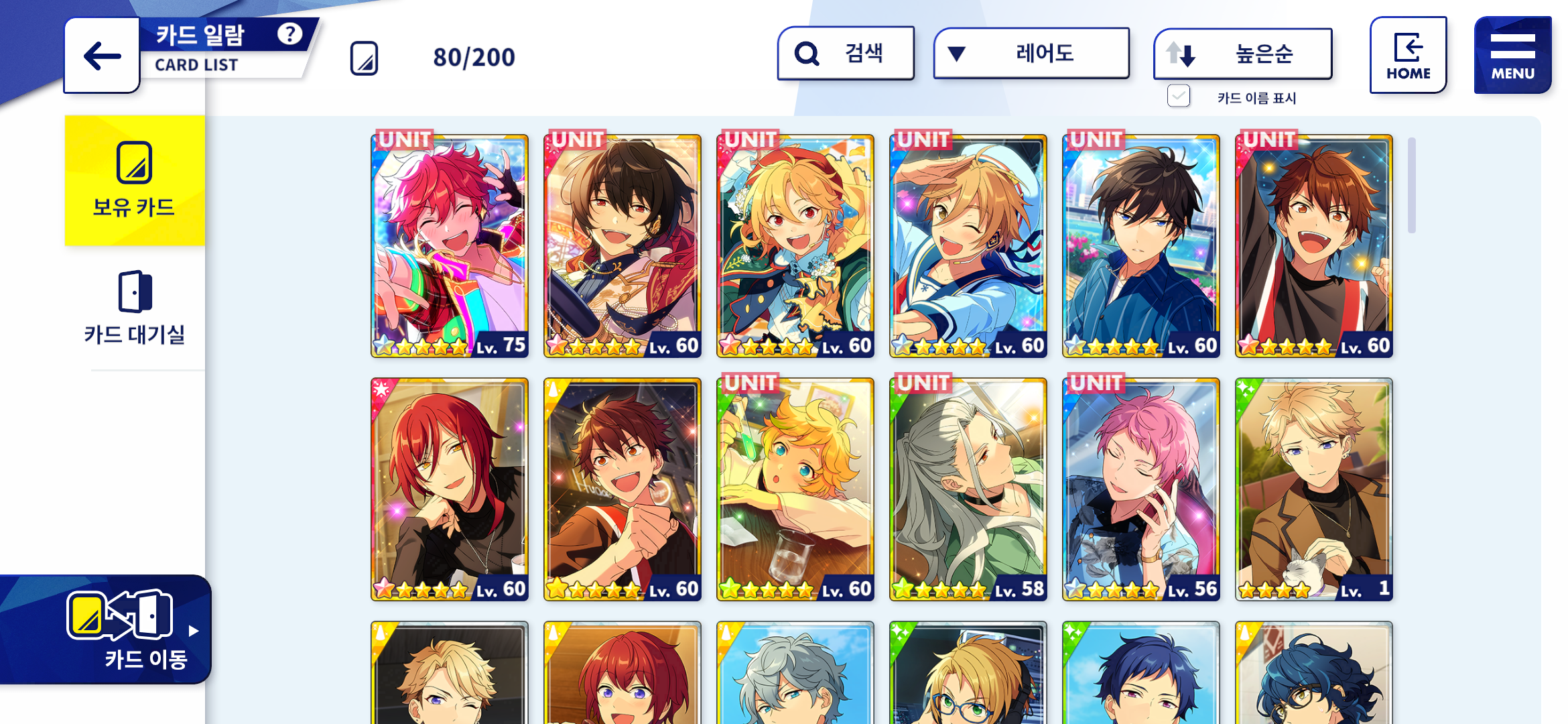 어쩌다 파랑빨강만 네 장이고 그나마 있는 노랑 초록 카드는 키우지도 않았네요