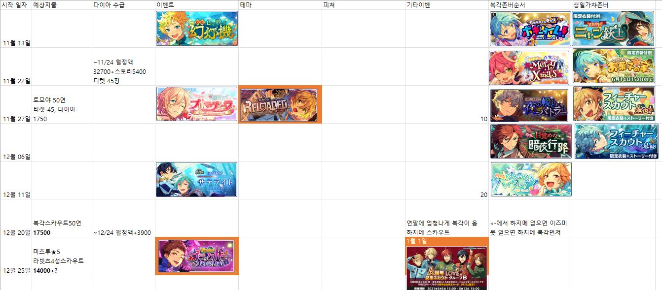 그것에 착안해 미리 올 이벤트 정리해서 최애와 성능을 고려해 무슨 카드 딸지 정하고 유료 재화가 얼마나 들지 계산하고 거기에 현명하게 대처하기 위한 존버 및 현질작전을 수립하는 것이 너무너무...! 즐거움