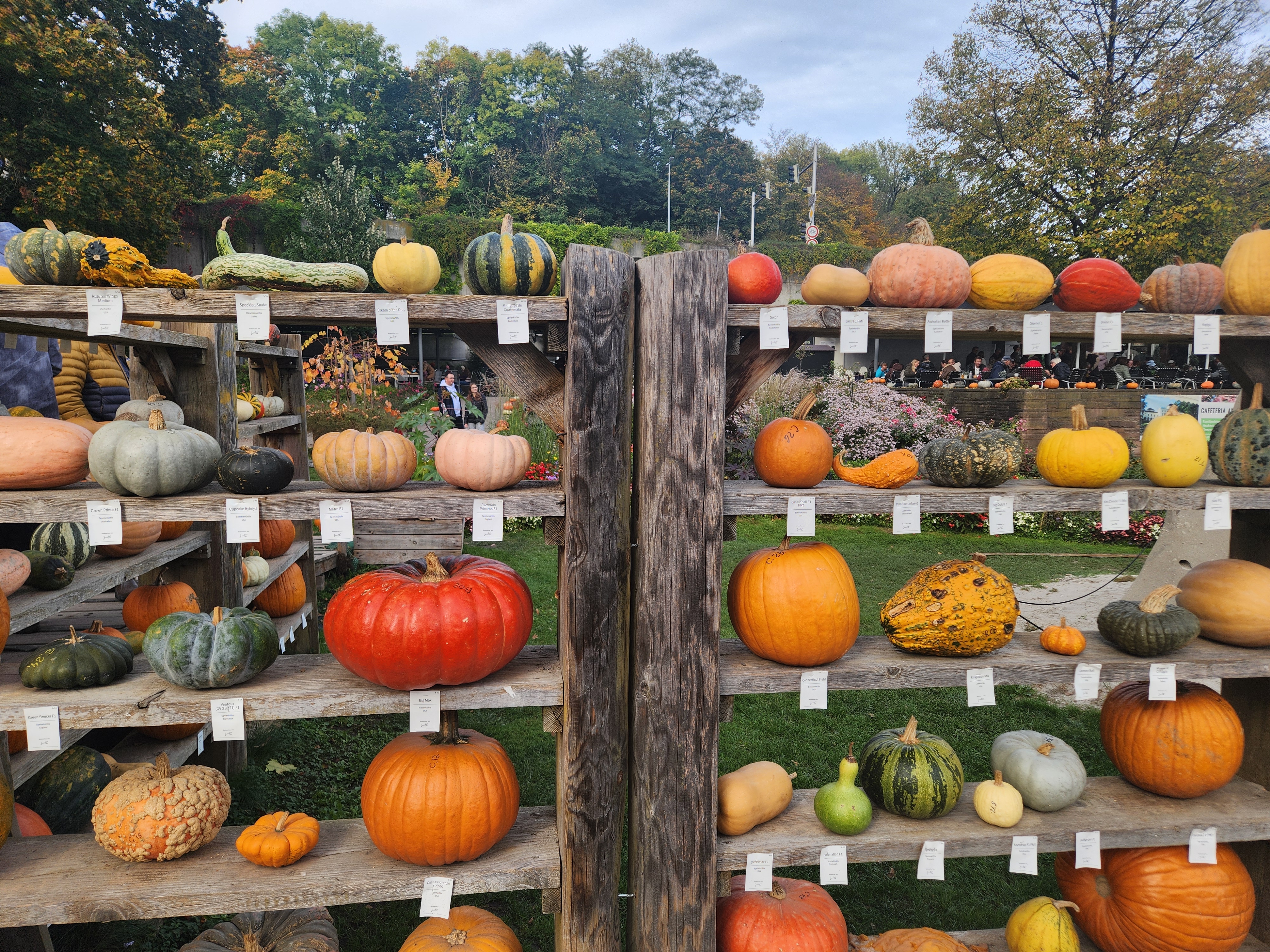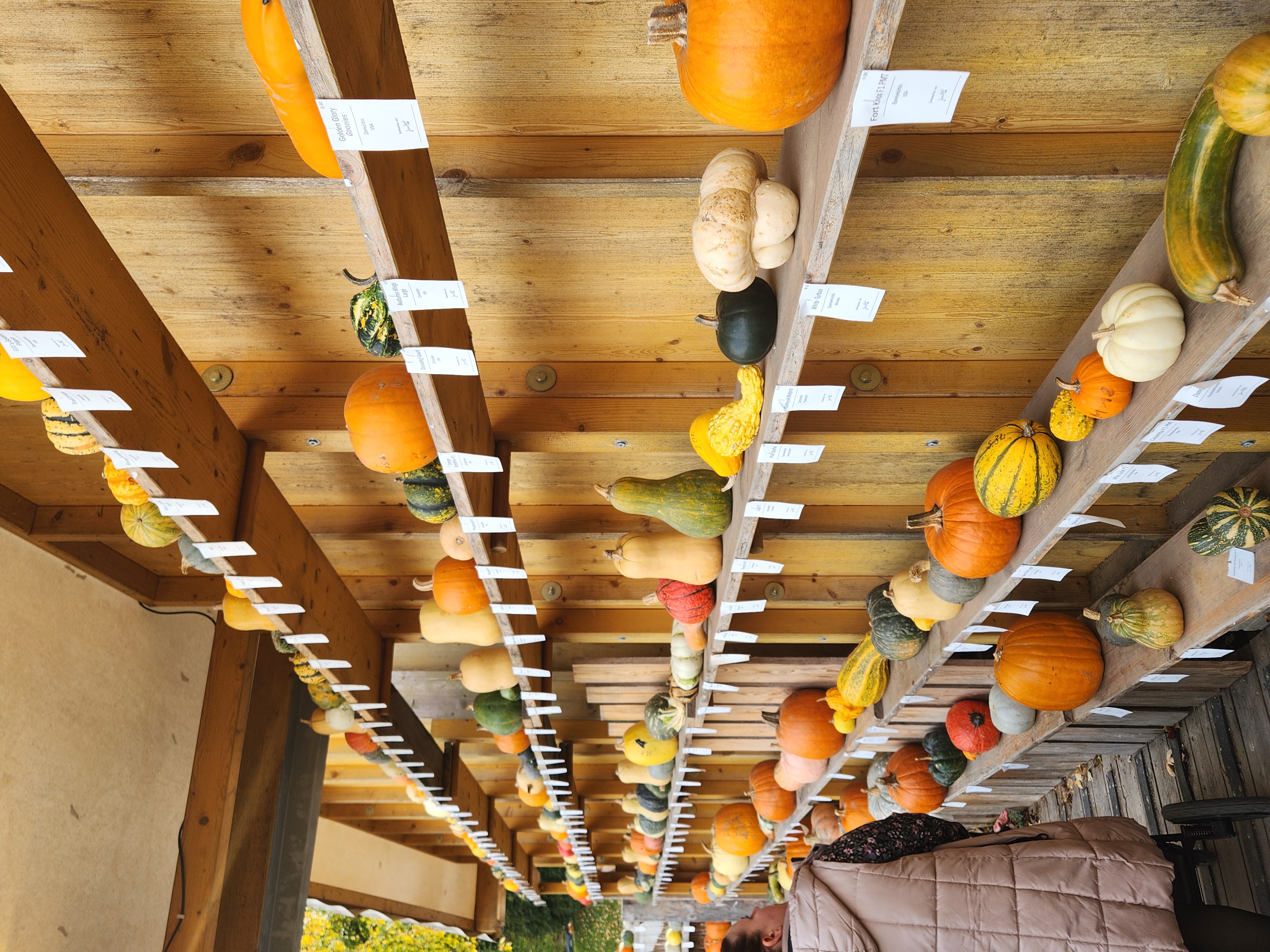 호박 품종 모음인지 내 예쁜 호박 봐라 출품전인지 잘 모르겠습니다. 아무튼간 다양하게 생긴 호박이 옹기종기 모여 있으니 귀엽습니다.