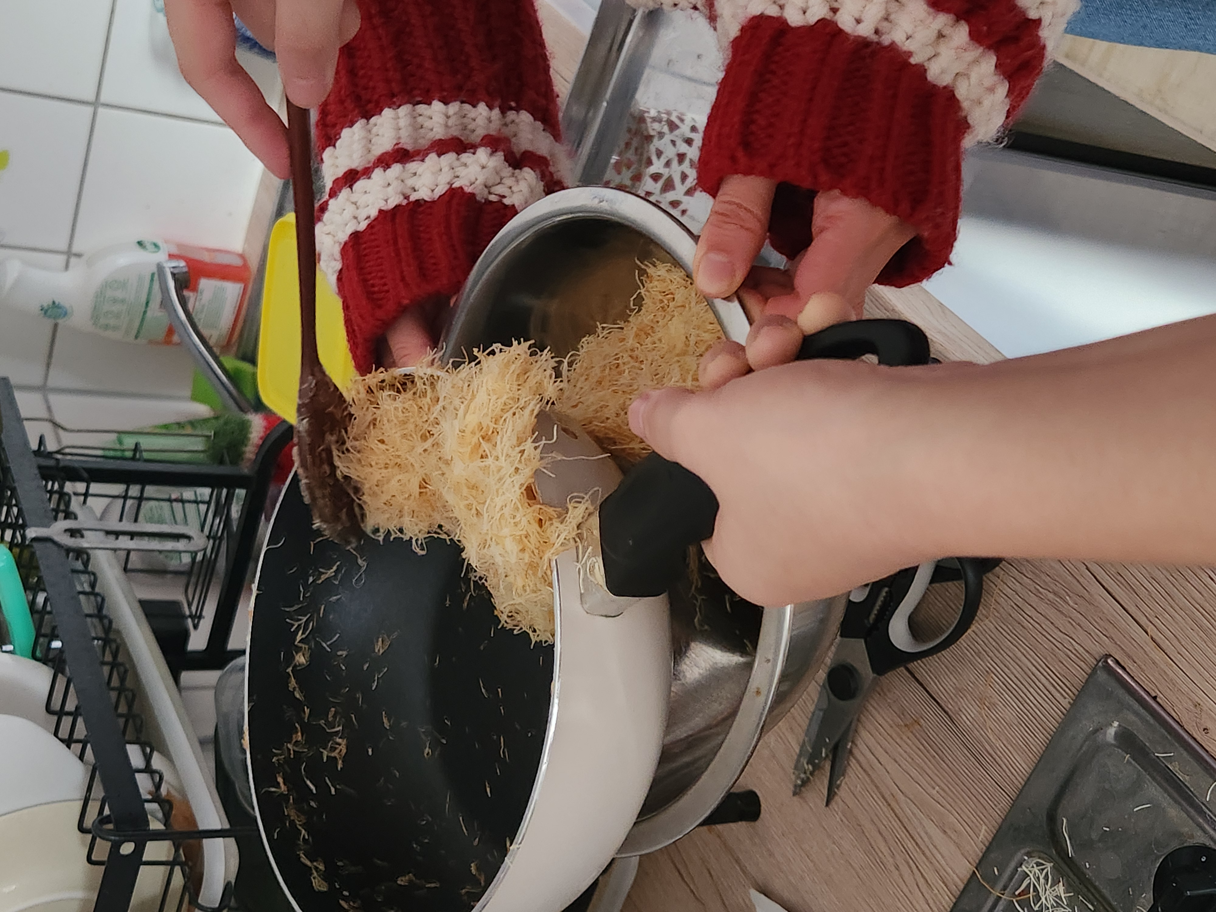사람이 많다면 한쪽은 마시멜로피 작업을 하고, 다른 한쪽에서는 병렬적으로 카다이프속 작업을 해 주는 게 좋다.